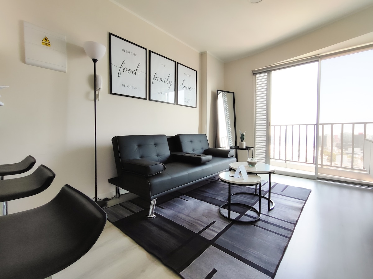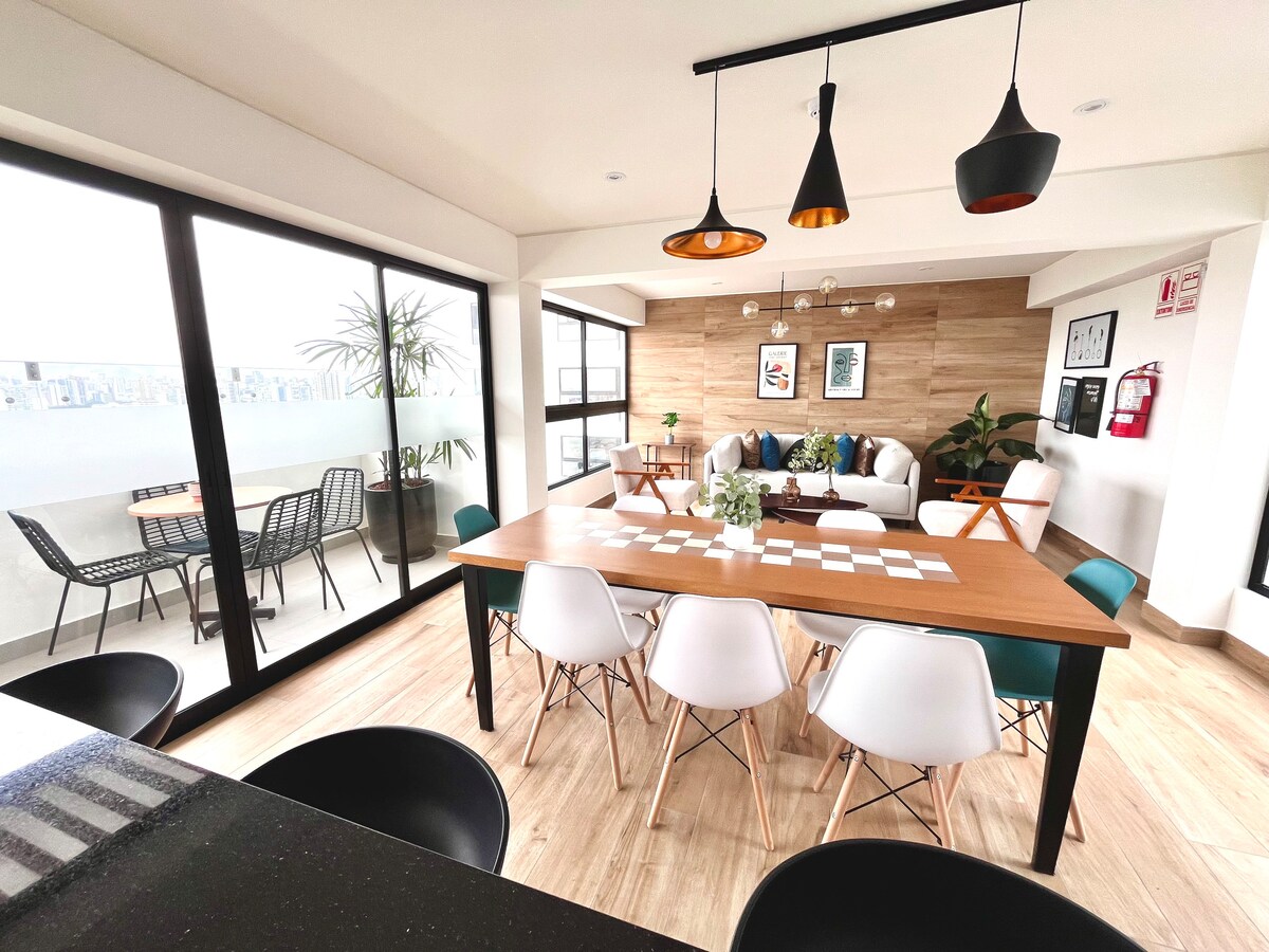 Brand new, fully equipped apartment located in a strategic area of the main avenue in Lima, Peru. With common areas in the building to make your stay a unique experience. It is created with the intention of offering a warm and cozy space to my guests, as well as exceptional panoramic views that will allow you to enjoy the sunsets and the beauty of the city.