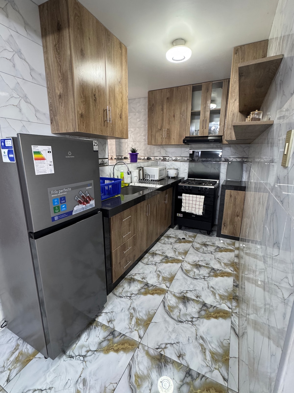 Charming 3rd Floor Loft Amoblado near Comas Mall Enjoy a comfortable and practical stay in this modern furnished loft, ideal for travelers, couples or those who work remotely. Elegant living room with designer furniture King size bed for a restful break Private Bathroom with Organizer Furniture Less than a block from Comas Mall - quick access to shops, restaurants, and transportation It has Netflix and HBO platforms WiFi included Your perfect temporary home awaits!