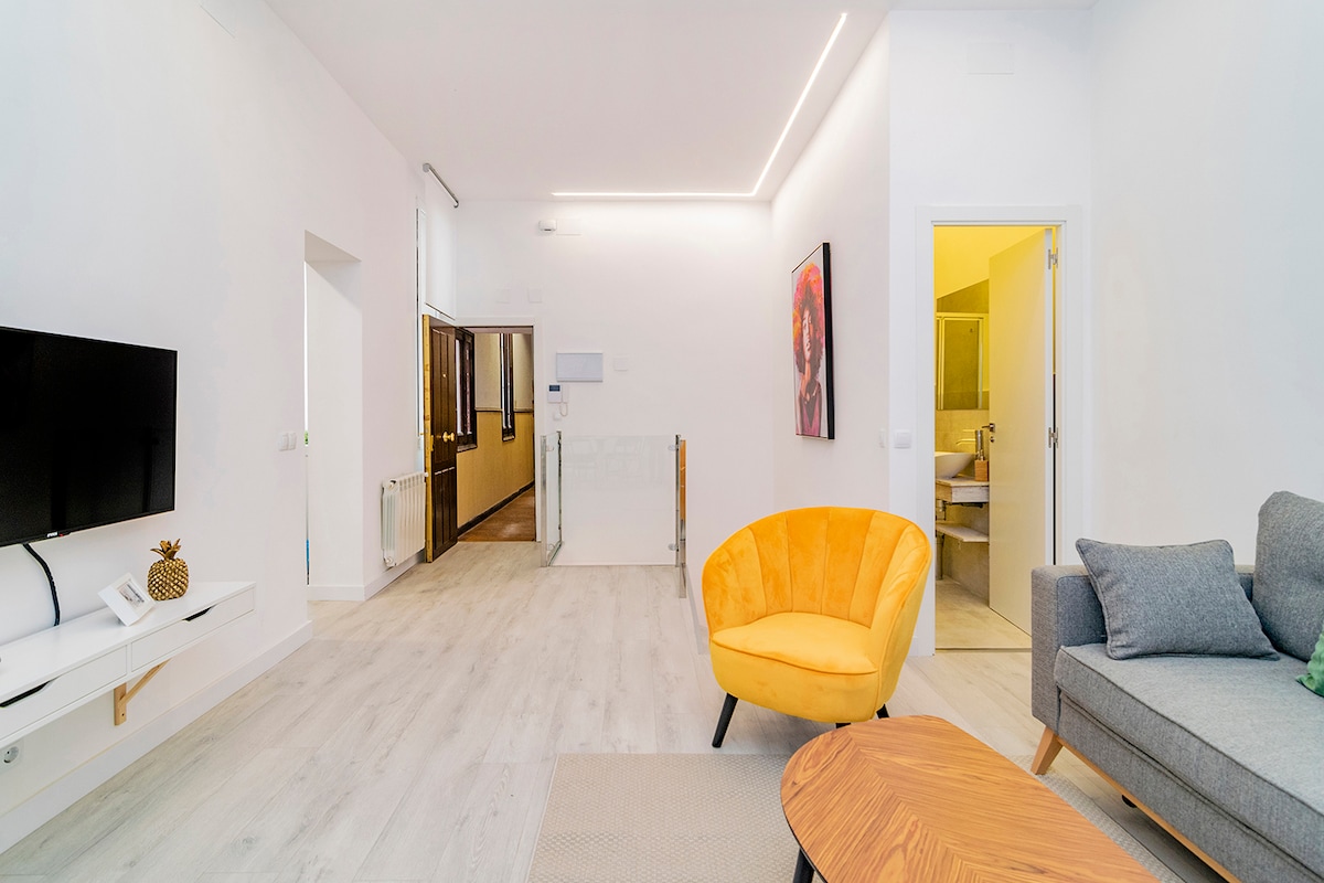 Elegant loft apartment in the heart of the city, a few meters from the emblematic Puerta del Sol, Plaza Mayor, El Rastro and other major tourist attractions. It has all the amenities: kind-size bed (180x200 cm), WIFI, Smart TV and fully equipped kitchen. Very well connected, with two metro lines less than 5 minutes walk. A variety of restaurants and trendy places in the area. Supermarket open 24 hours 3 minutes walking from the apartment.