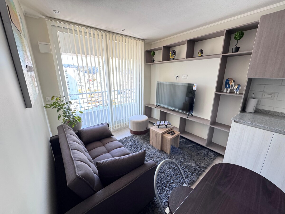 Beautiful two-room apartment, in the heart of Concepción, quiet environment with all the comforts for a great stay. Free parking. Located in the city center near the main attractions (Mall del Centro, Universities, Shopping Centers, Parks). Excellent connectivity and transportation option to the door. It has a crib for a better stay for parents. It has a futon-bed (for third guest - additional cost)