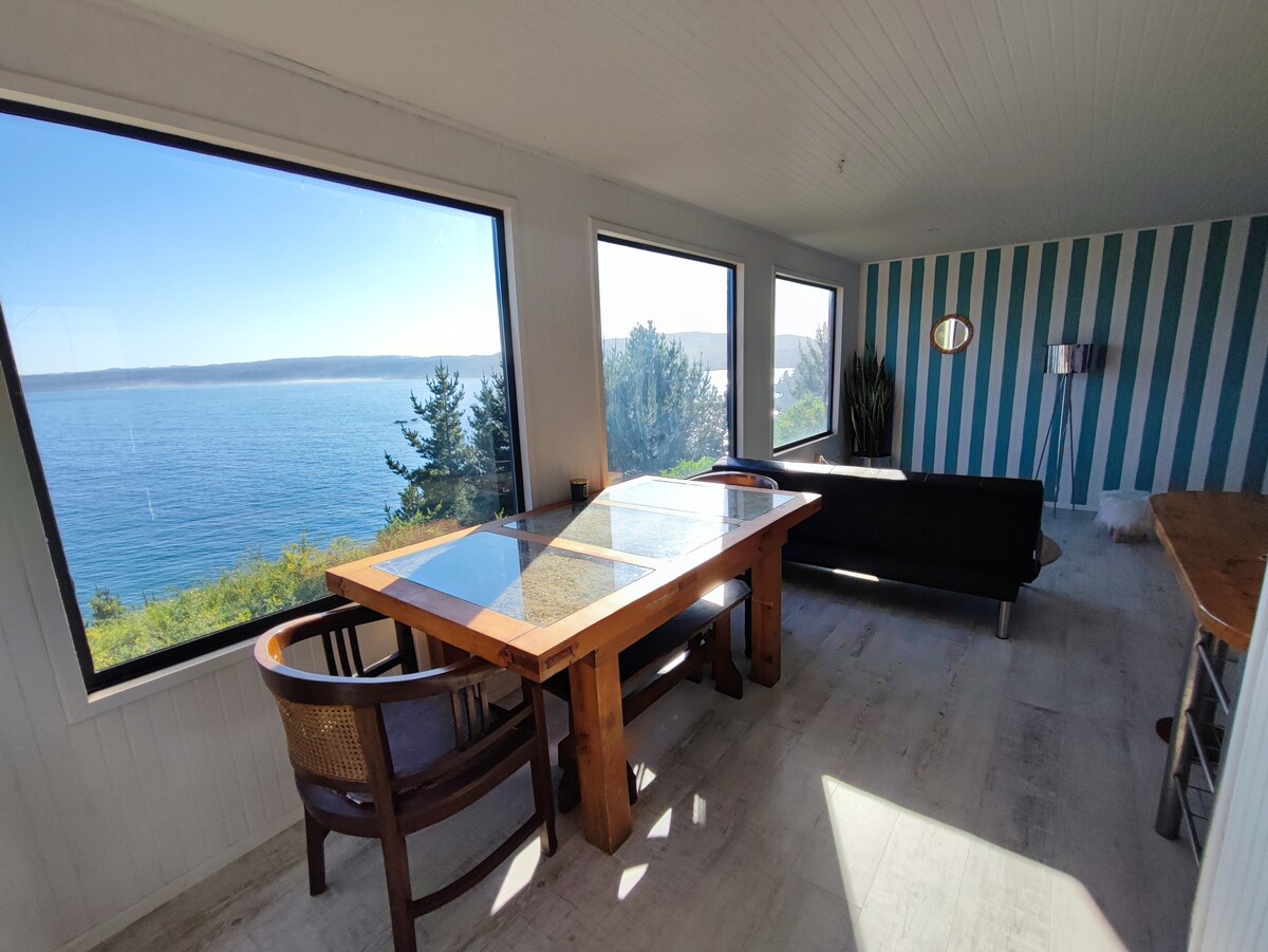 Windows to the Sea. Chalet built for contemplation and rest; tour beaches and rocky areas. Coastal retreat located in a setting with stunning views of the cliffs and Coliumo Bay.