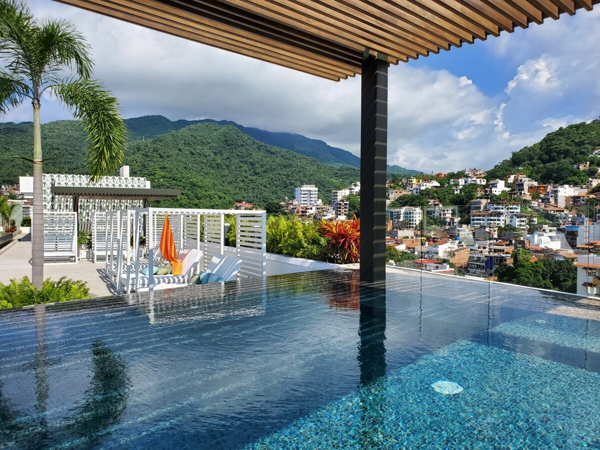 Casa Ke’aku is a hidden gem in Puerto Vallarta for those who appreciate art, design, and refined style. Located in the Romantic Zone, just three blocks from the city’s vibrant gay nightlife, it features contemporary Mexican art, curated interiors, and designer furniture. The rooftop boasts ocean views, an infinity pool, jacuzzi, and stylish bar—perfect for sunsets. A stay here is pure inspiration, comfort, and coastal charm. PV is a dynamic city, with buildings everywhere, we have one behind.
