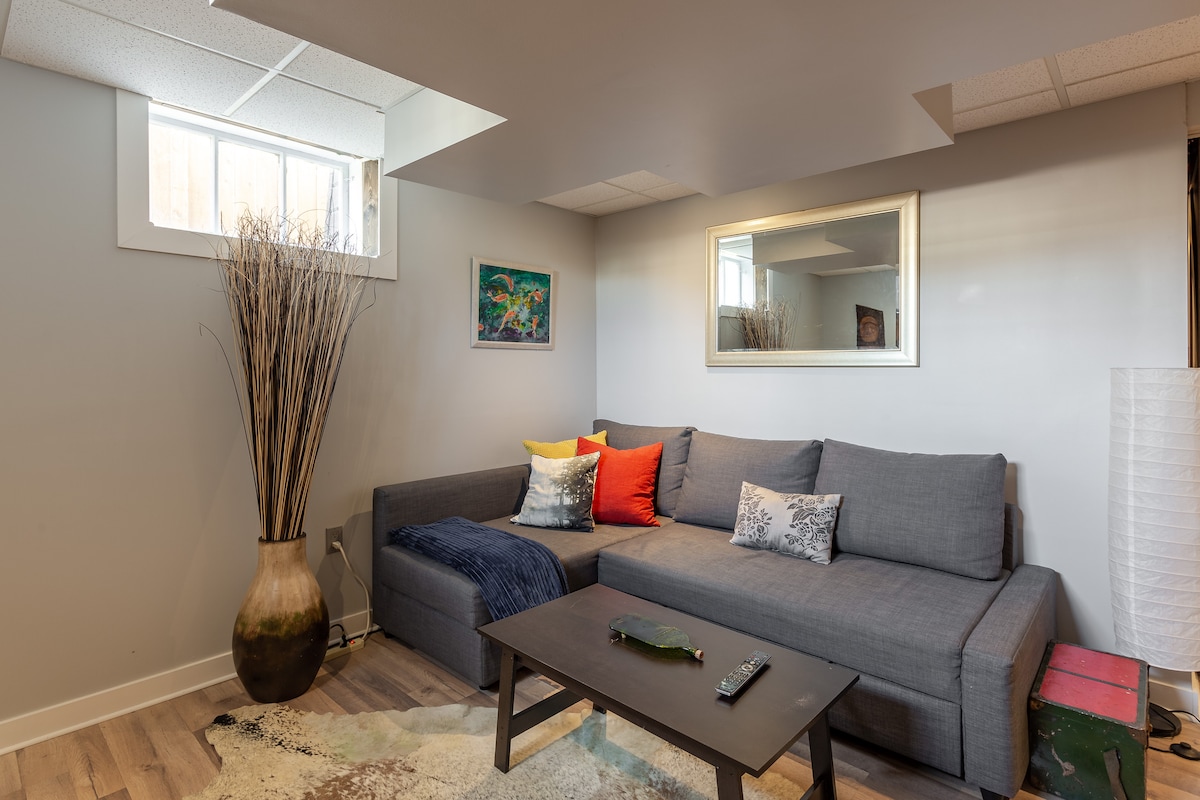 Welcome to your home away from home! 🏡 This bright and cozy 2-bedroom basement suite features large windows feel natural light 🌞 🛋️ What you’ll love: • Comfortable beds for a restful stay 💤 • Stylish wet bar for some drinks 🍷 • 55” TV with Netflix subscription 🎬 • Best 🥇 Fibre 2Gigabit Wi-Fi ⚡️ • Reserved parking right by the entrance 🚪 📍 Prime Location: Nestled in a quiet inner-city neighborhood 🌳 • 🚗 15 mins to YYC Airport • 🏙️ 12 mins to Downtown • 🚌 2 min to the bus stop