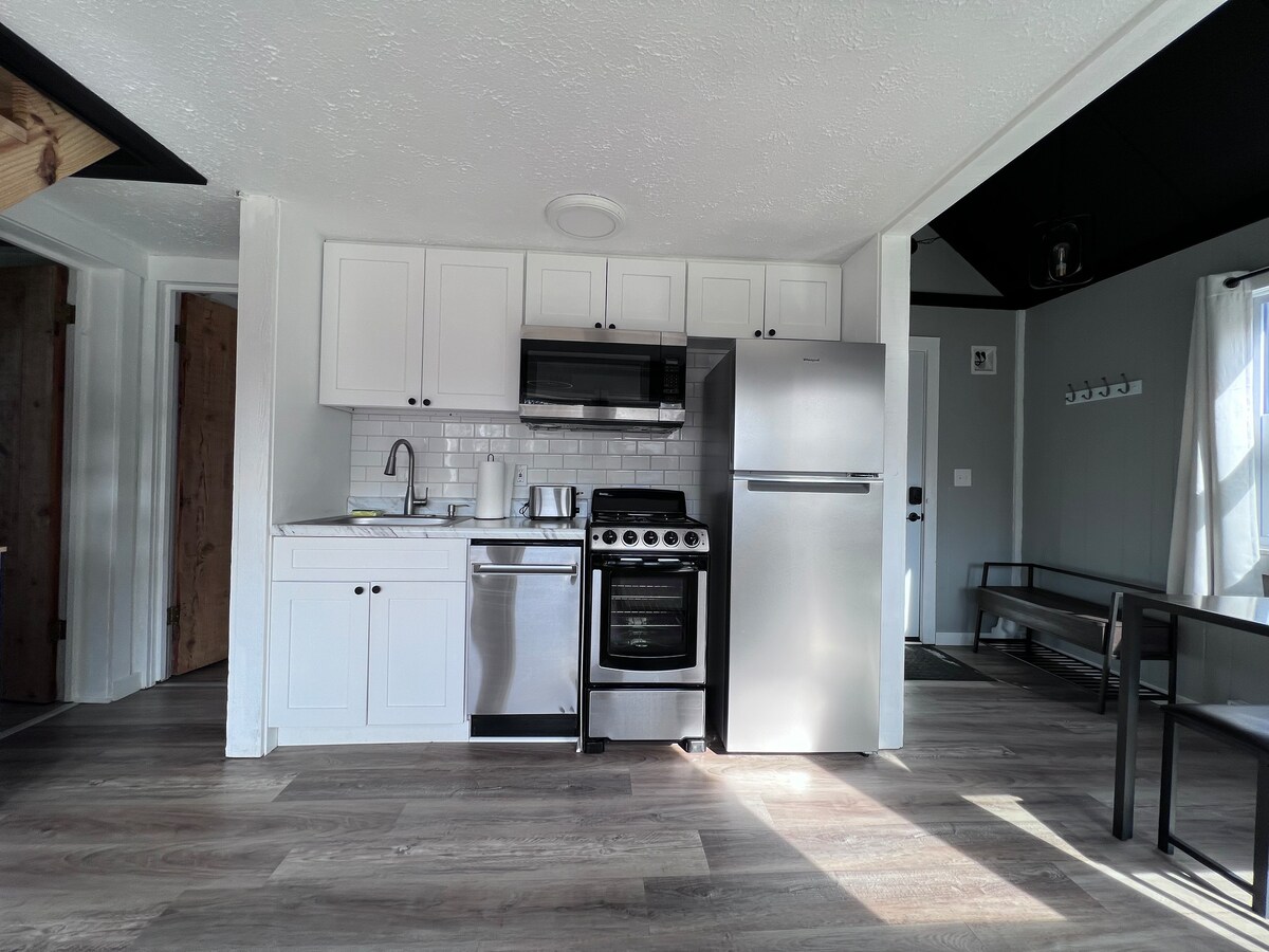 Newly renovated chalet nestled on 15 acres within minutes of Conneaut Lake, Firemans Beach, Icehouse Park, Barbara J Cruises, Conneaut Cellars Winery, restaurants, coffee shop, gift shops, and more. There are 6 chalets on the property. Laundry facility and free parking onsite. 15 minutes from Meadville. Each chalet has a first floor bedroom with full bed, first floor bathroom, kitchen, living area, a loft bedroom with queen bed, and back deck overlooking pond.