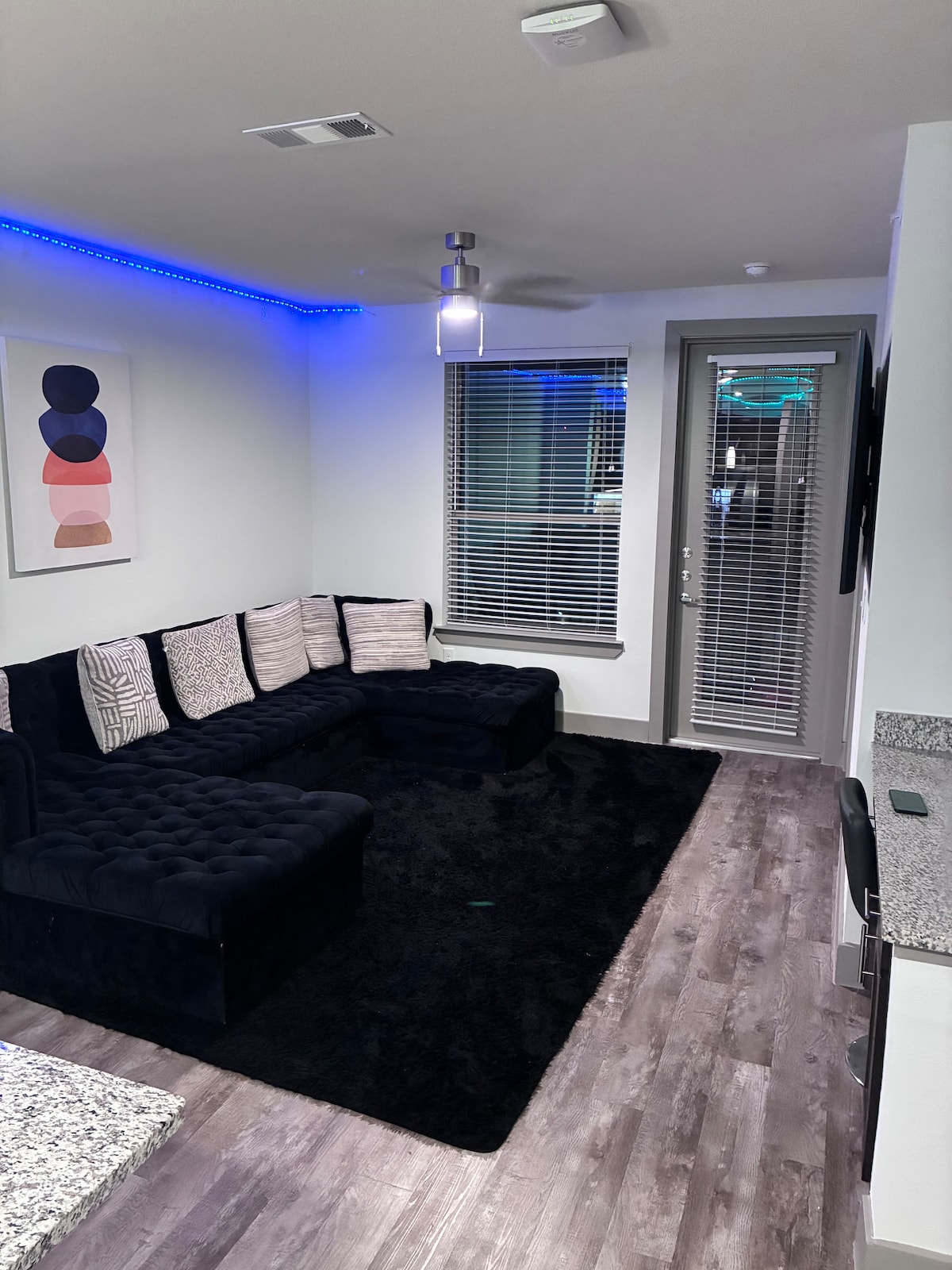 Kick back and relax in this new construction, modern, stylish home. Located in the heart of downtown Conroe. Extremely close to great dining, entertainment, and the Conroe convention center. About 15 minutes from Lake Conroe, this vacation will be one to remember! Enjoy a movie on the rooftop under the stars or make memories around the outdoor fire pit in the backyard. Get cozy in front of the 75” television. With televisions in every room, enjoy a peaceful night’s rest on comfortable beds.
