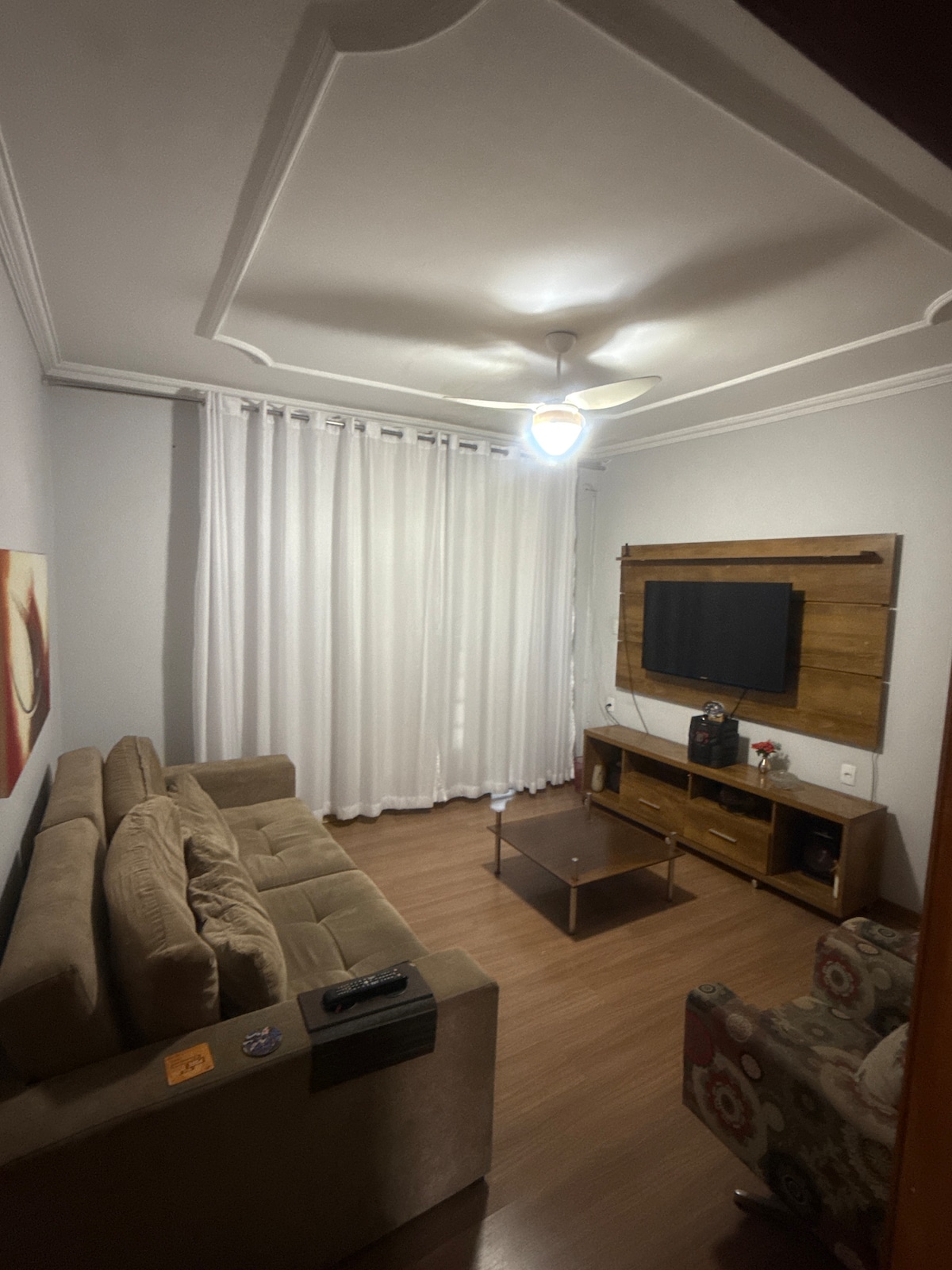 The space comfortably accommodates up to 5 guests. 2 Bedrooms: Room 1: double bed and fan Bedroom 2: 2 double beds + wardrobe + fan The living room is inviting and has a Smart TV to relax after a day of work or sightseeing. The kitchen is equipped with the basics for your meals. Kitchen equipped with all the necessary utensils for the stay. 1 WC. 1 parking space. {Note: only for small/medium cars}. Close to several shops, a perfect place to rest.