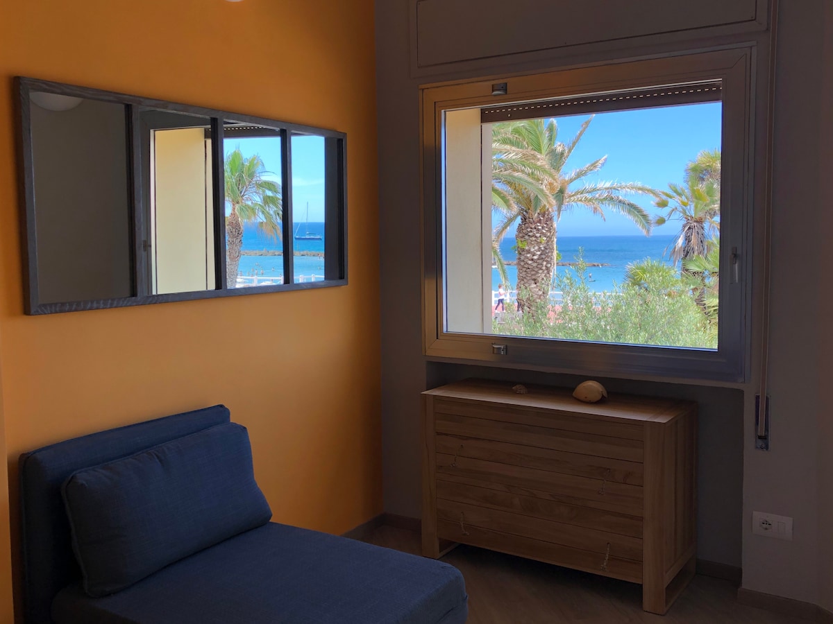 HomyHome is a nice studio flat on the 13th floor facing the sea. Open space composed of a double bedroom, small living room with sofa bed, bathroom, kitchen and a 120 m2 terrace with a splendid view of the sea and the city. It is located a few steps from the railway station and is about 300 meters from the port. The apartment is not accessible to people with mobility difficulties, the building has a lift up to the 12th floor, the 13th floor is accessible only by stairs.