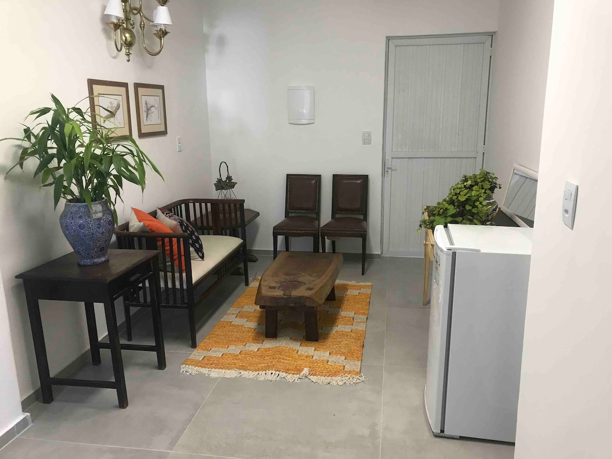 Independent access small space (11 m ²) with air conditioning, sink with 2 burners cooker, fridge and microwave. Private bathroom. Cable tv and wi-fi, 500 m from the Siqueira Campos Metro and 2 blocks from the beach. New space all retired. Accommodates up to 2 people.