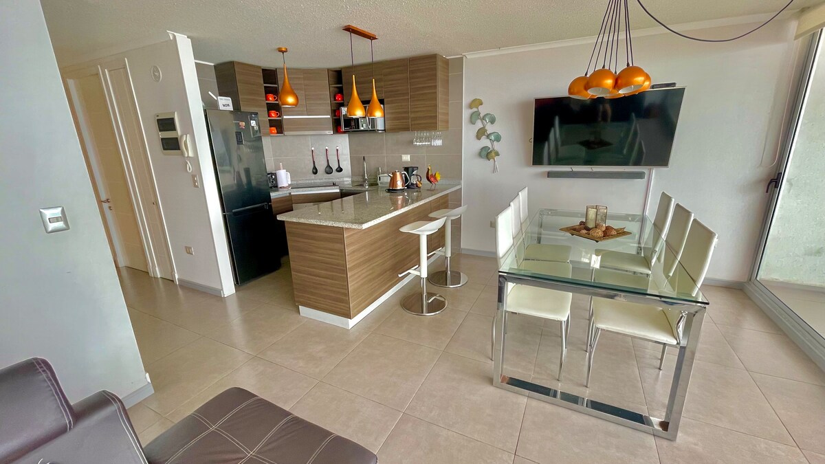 Acogedor departamento con vista al mar, ubicado en primera línea frente a playa La Herradura. Se encuentra en un piso 19, equipado con todo lo necesario para que los huéspedes tengan una excelente y cómoda estadía. Incluye estacionamiento techado. El recinto cuenta con salida directa a la playa, seguridad 24/7, piscinas, quinchos, gimnasio, jacuzzi, sauna y lavandería (piso 1). Cercano a supermercados, restaurantes, entre otros.
