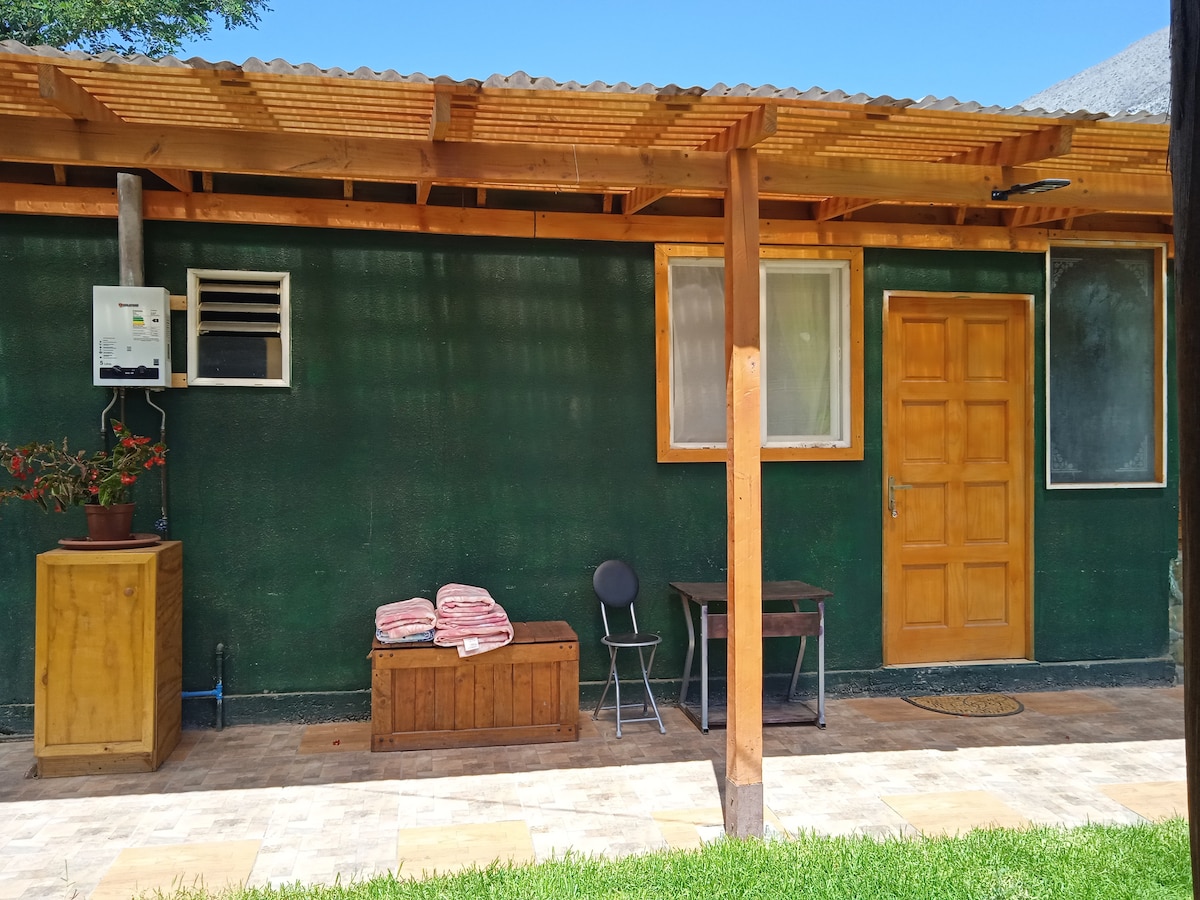 The accommodation has many outdoor spaces, it is located in a rural area 7 minutes from the city of Vicuña. The cabin has a kitchen, terrace, bathroom, and bedroom. It has private parking. We are dedicated to agriculture. We have a vegetable garden and animals that can connect you with nature. The bedroom is a very comfortable and cool place since our house is built in adobe, thick mud walls that generate great thermal insulation.