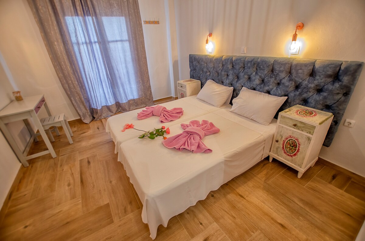 Enjoy easy access to popular shops and restaurants from this charming place to staWhen you close your eyes and imagine Greece, no doubt a picture of blue skies and azure seas comes to mind. You may imagine little villages with their cluster of houses and gardens and walls lined with potted geraniums. Well, the Sunflower Apartments is very like this picture. They are like a tiny typically Greek neighbourhood; fresh and light and connected with little courtyards.