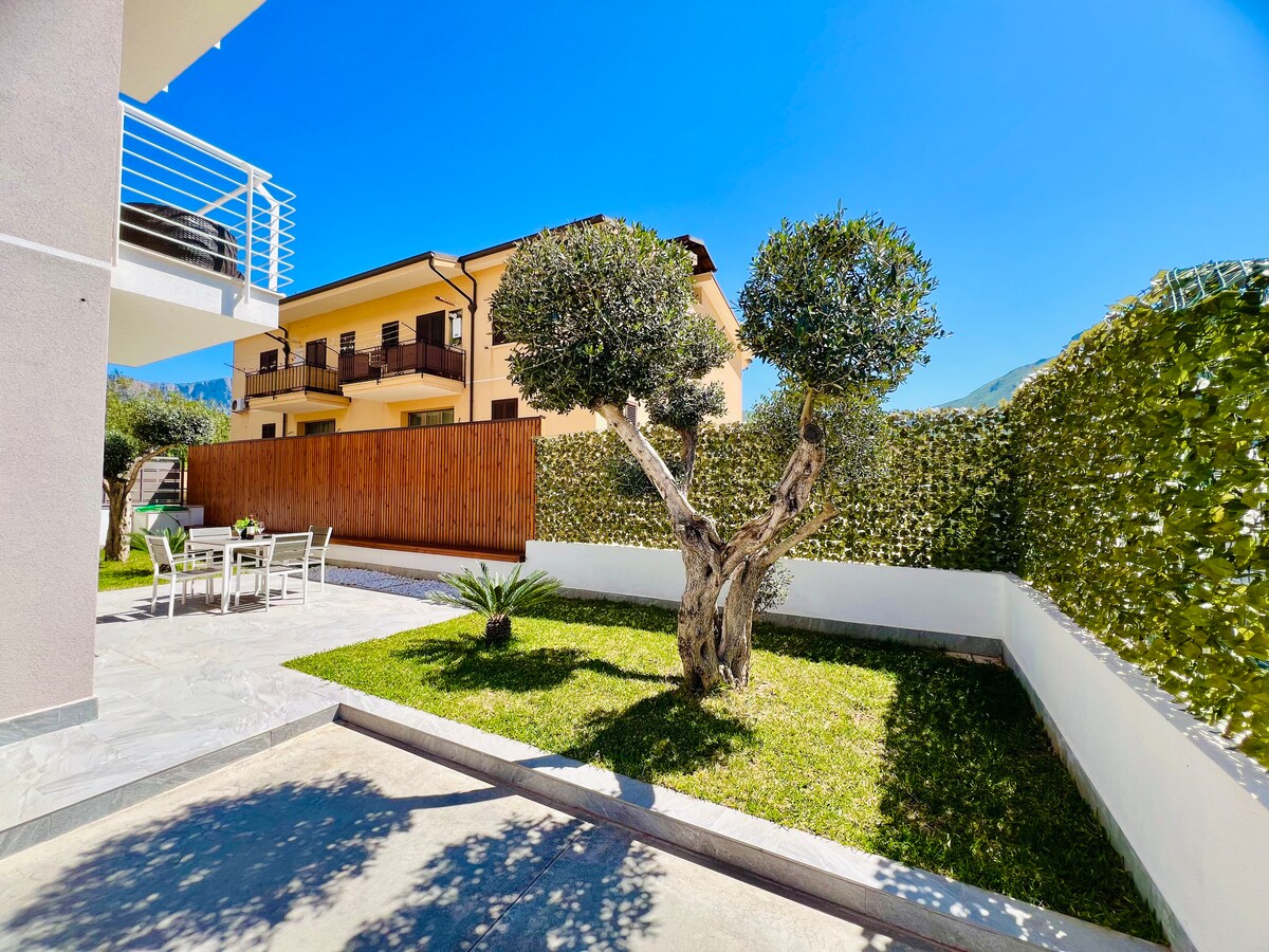 This ground-floor apartment is just steps from the beach and town center. It features a balcony and a large veranda with a pergola. It's comfortable, bright, and newly built. For your relaxation, the veranda/terrace offers comfortable armchairs, sofas, and a large table with chairs. Opposite the property is the beautiful beach and small harbor, the starting point for the many excursions organized daily. Parking is included in the booking.