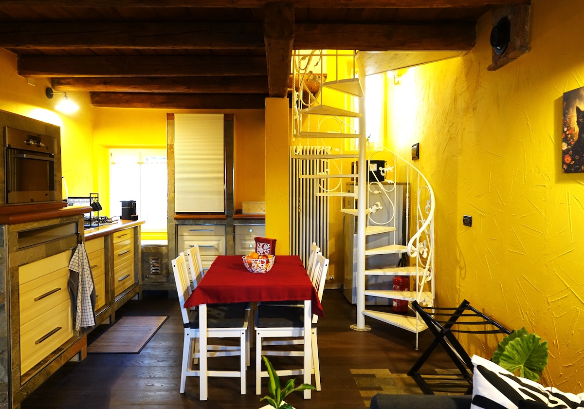 Spacious and bright apartment in the historic center of Cormons, just steps from restaurants, wineries, and local shops. The refined, high-end design offers every comfort for an unforgettable stay: exposed beams, quality furnishings, private balcony, and a fully equipped kitchen. A true highlight is the dining area—naturally lit, welcoming, and perfect for relaxing. On request, we offer exclusive experiences: wine and food tours, tastings, vineyard aperitifs, and e-bike rental.