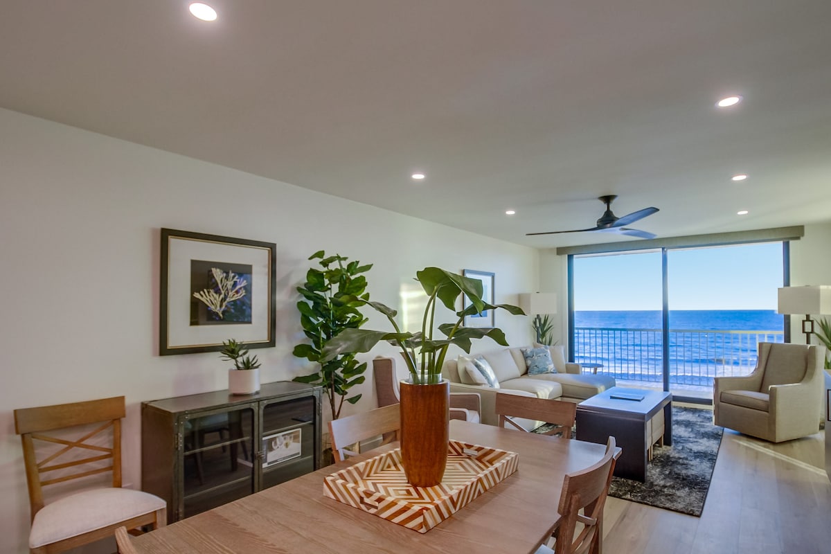 Let your worries drift away at this 6th floor corner condo with panoramic ocean views! With floor to ceiling windows throughout, you'll feel like you're floating above the sea! Leave your toes in the sand or walk to PB's best restaurants and attractions in minutes! When you're done exploring, put on a Beach Boys record while having dinner with the family amid a golden sunset..ah the good life! Create cherished memories that will linger long after the sun sets, here, at The Endless Summer Condo!