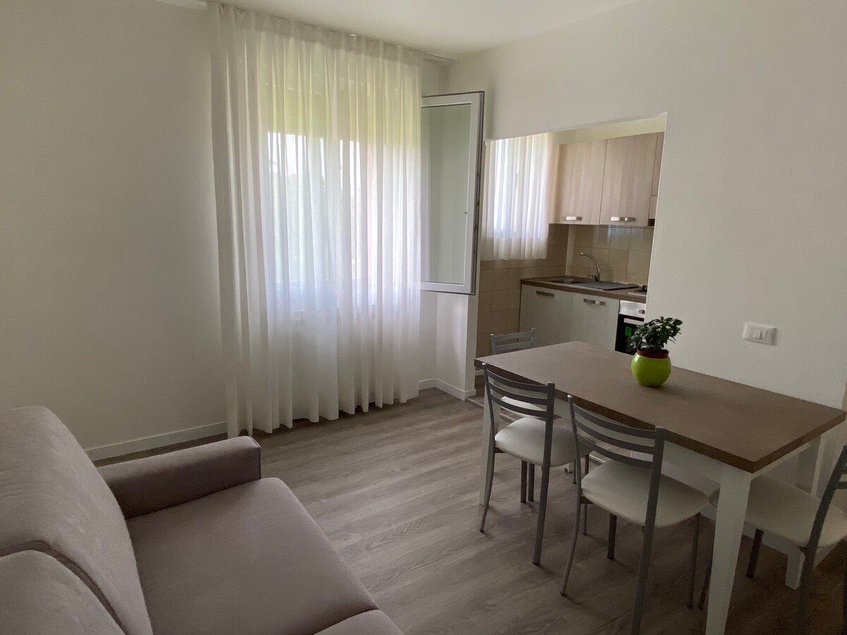 Apartment inside a private house, but still independent, located in the quiet area of the pine forest of Jesolo, a few minutes from the beach. The apartment consists of a kitchen/living area, a bathroom and a double bedroom. Complete with all amenities from WiFi to air conditioning as well as sheets, towels and all the necessary kitchenware in the kitchen.