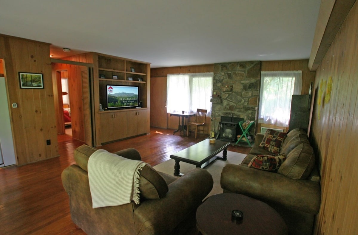 Great Smoky Mountains cottage in a beautiful setting at the fork of two babbling creeks and a stocked pond. A small waterfall is a short hike up the creek on the property. Get away from it all and relax, fish in the stocked pond, listen to the songbirds, chase fireflies, watch the wildlife, make a campfire, hike and explore. If you want a little more excitement, the heart of the parkway is just 5 miles away.