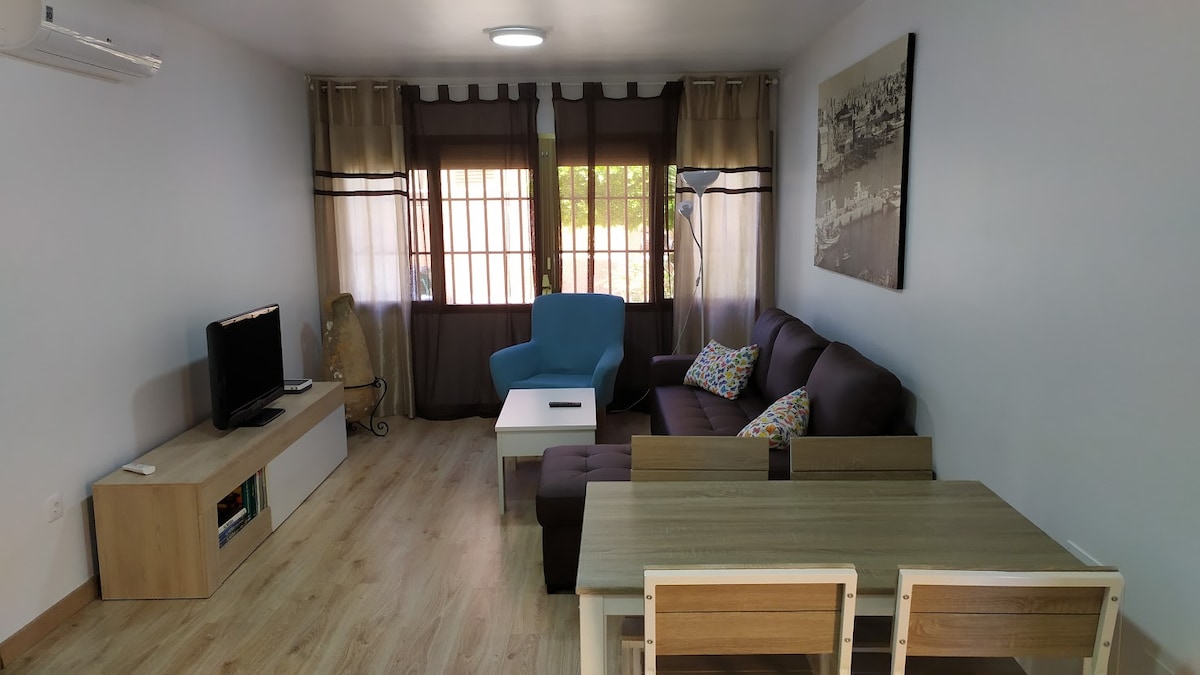 Ground floor apartment, completely renovated in 2020, very bright. Large bedroom with air conditioning, USB plugs and large built-in wardrobe. Full bathroom with large shower tray. Kitchen with all appliances, crockery, kitchenware, and toaster. Large living room with sofa bed and air conditioning. Parking for residents, and pedestrian access to the beach. Close to bars and restaurants and the natural park where you can walk or play sports.