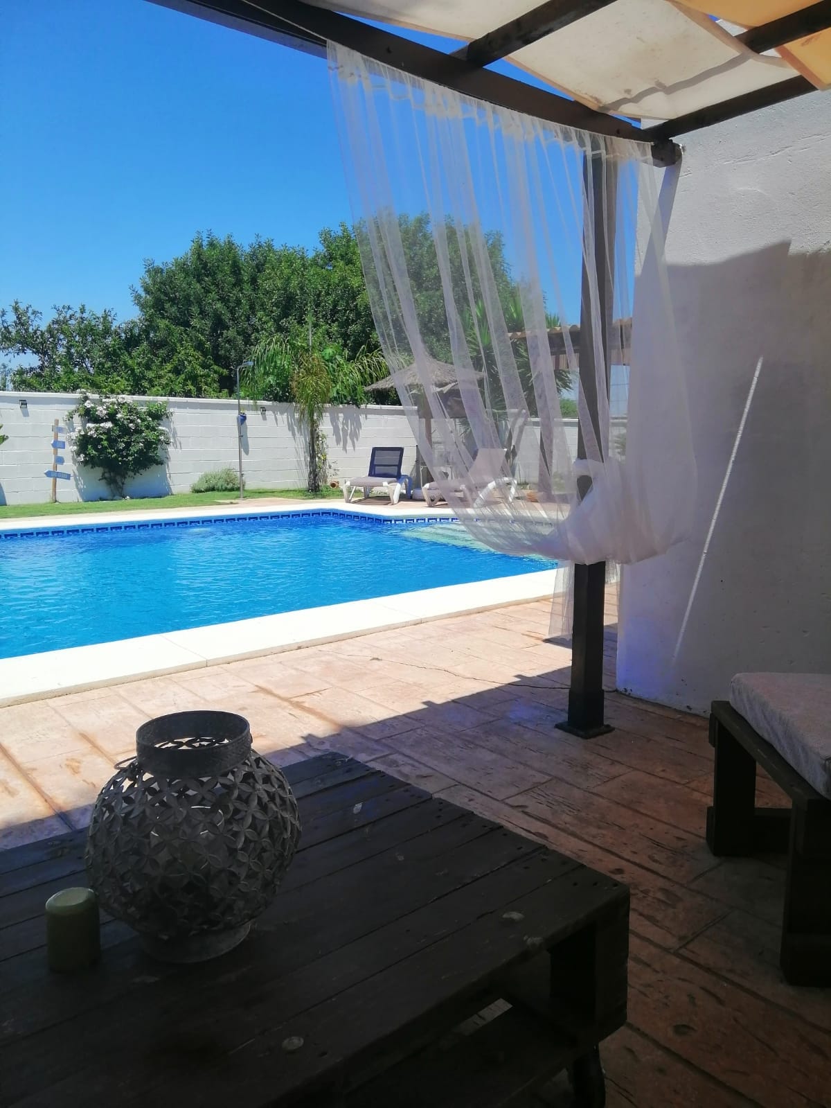 Independent villa in a quiet area with a swimming pool and built-in barbecue and a porch to be quiet and relaxed. Garden areas and inside a living room with two new smartv sofas with WiFi, full kitchen with washing machine, two bedrooms, one of them with two 90cm beds and the other with a double bed, bathroom with a comfortable shower, high ceilings that give the house great freshness in summer and 2-meter high windows with mosquito nets