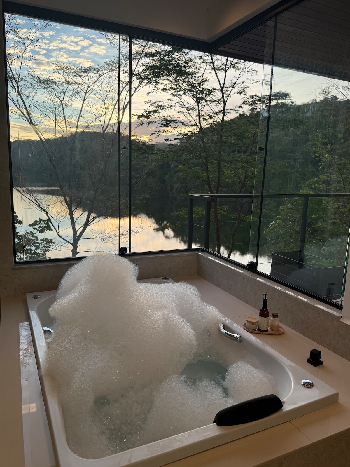 Experience unforgettable moments with exclusive access to the dam and incredible views! Private space for couples, with a pool on the grounds, an outdoor fireplace and a pier. Bedroom with a double bed, air conditioning and curtains. Full kitchen with air fryer, microwave, minibar, cooktop, sandwich maker, electric barbecue, coffee maker and cooler. Complete set of towels, shampoo, conditioner, liquid soap, hair dryer and mirror. Table for two with special decoration for your comfort.