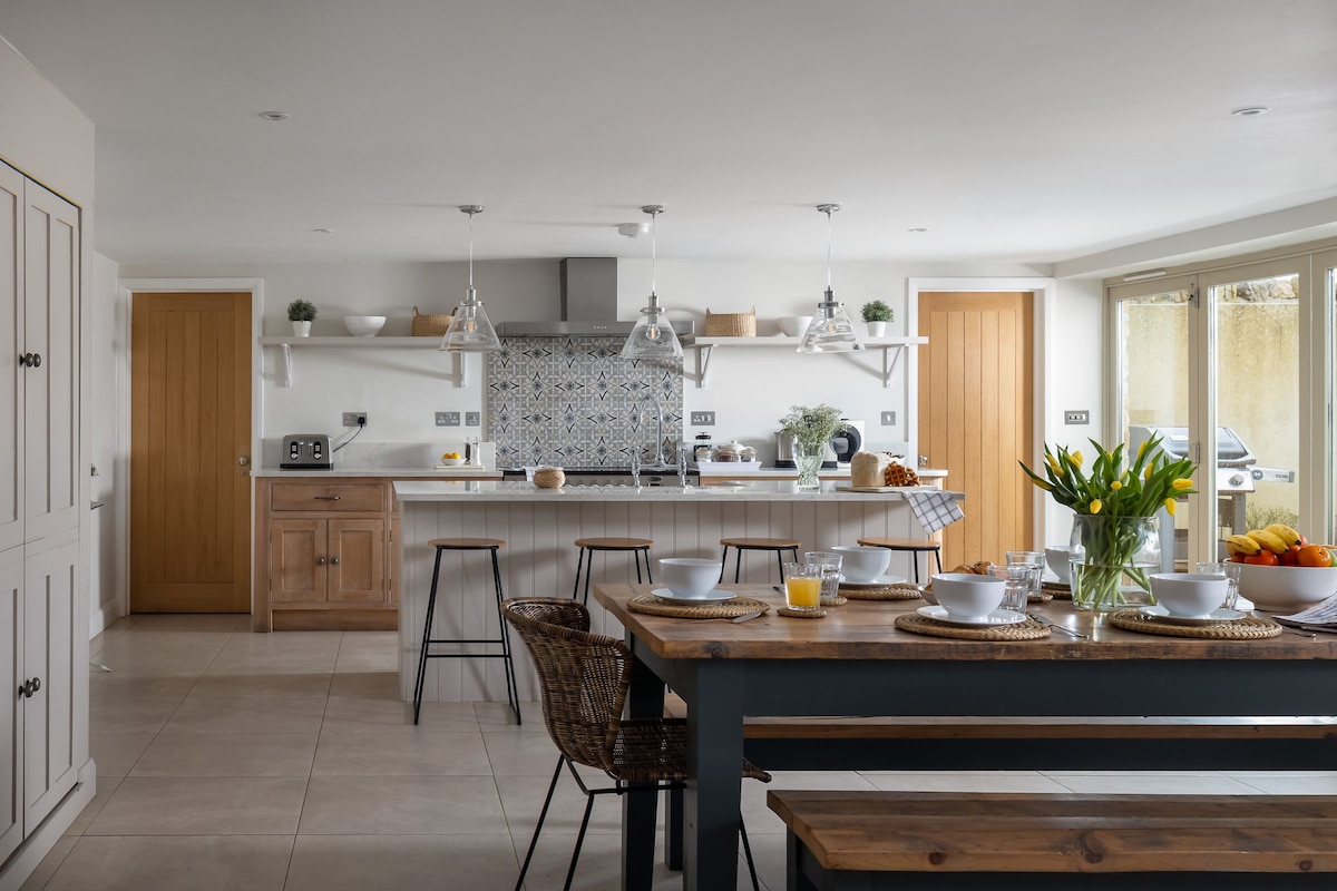 Stone Barn is a light and airy contemporary barn conversion with a wonderful open-plan living space, situated just outside the picturesque village of Upper Swell and within two miles of the popular market town of Stow-on-the-wold. The cottage also has shared access to 12 acres of grass and woodland which you are free to roam at will, within the shared grounds are a tennis court, badminton court and games room which can be used whenever.