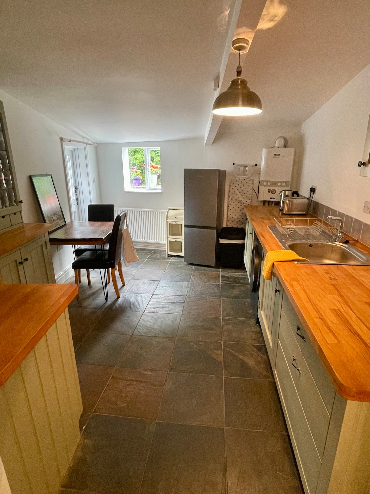 The Annexe is a self contained property directly opposite our family home. All fixtures and fittings have been thoughtfully planned to ensure you have a comfortable stay. There is one large double bedroom with a luxurious king size bed, an open plan living area with a smart TV, log burner for cozy nights and electric heating. The bathroom has a large walk in electric shower. The property is suitable for up to two adults (not suitable for children/toddler’s due to the large pond nearby).