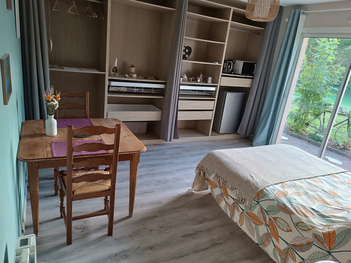 Come and recharge your batteries in this peaceful little corner of the Périgord Vert where comfort, nature, calm and indulgence mingle! You will be totally independent thanks to an entrance through the bay window of your large master suite, birdsong and pretty view guaranteed 💚 Equipped with independent toilet, spacious bathroom and large bedroom with 160/200 bed with fridge, microwave. Possibility of dinner( 19 euros per person) and breakfast(8 euros per person) at extra cost