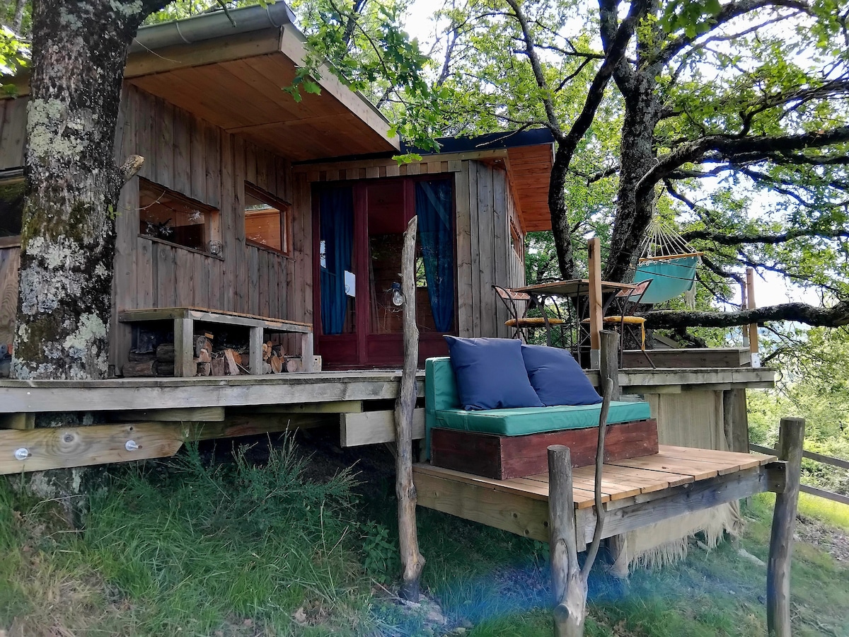 Small 6 m2 house with covered terrace and large hanging hammock, perched among the trees in a quiet setting. First human presence (us!) at 200 m: you will be alone in the middle of the woods. The 300 m walking access includes a steep slope. Coffee and tea are available. We offer homemade meals. Bed linen provided, towels not provided. Communication via Airbnb, because the phone does not get a good signal at our place (in the cabin it's good).