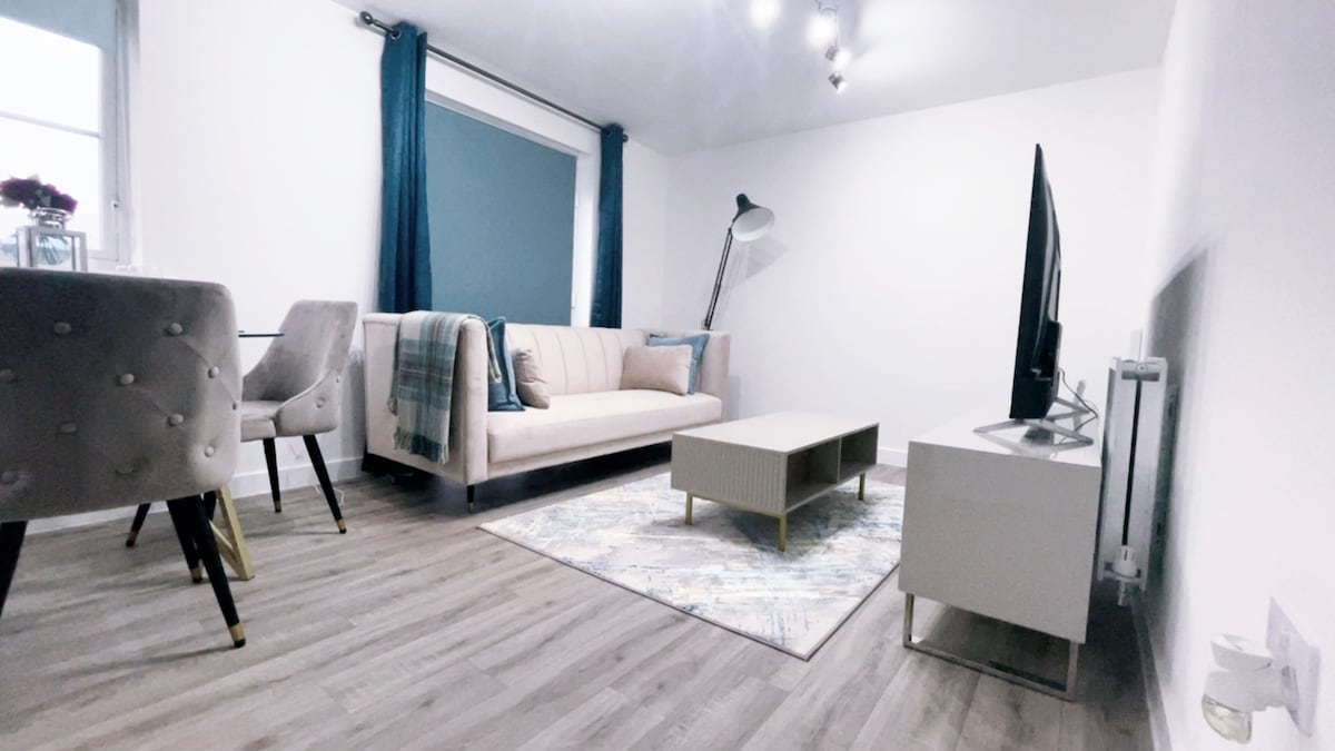 This is a newly built, well-equipped, and exquisitely furnished apartment in the heart of Coventry. With exceptional views of the city, allocated parking, two double bedrooms, and an en-suite bathroom, you’ll enjoy plenty of comfort. The open kitchen/lounge area features modern fittings and integrated appliances. Experience the unique and modern charm of Harmony. Book your stay today and enjoy contemporary living away from home Please Note: Parties or events not permitted in this apartment