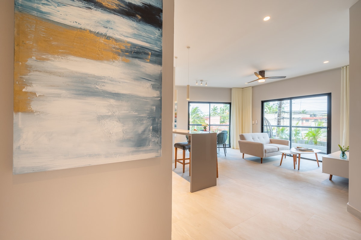 This is the place you've been looking for. Luxury 1BR apartment right next to the beach. Singular Joy is located 100m away from the beach, what will give you an amazing view of the caribbean sea. The apartment has everything you need for a pleasant stay. King size bed, 2 Smart TVs, full kitchen with appliances, electronic lock, a sofa-bed in the living room next to the dining space and the incredible view from the balcony. You won't believe it.