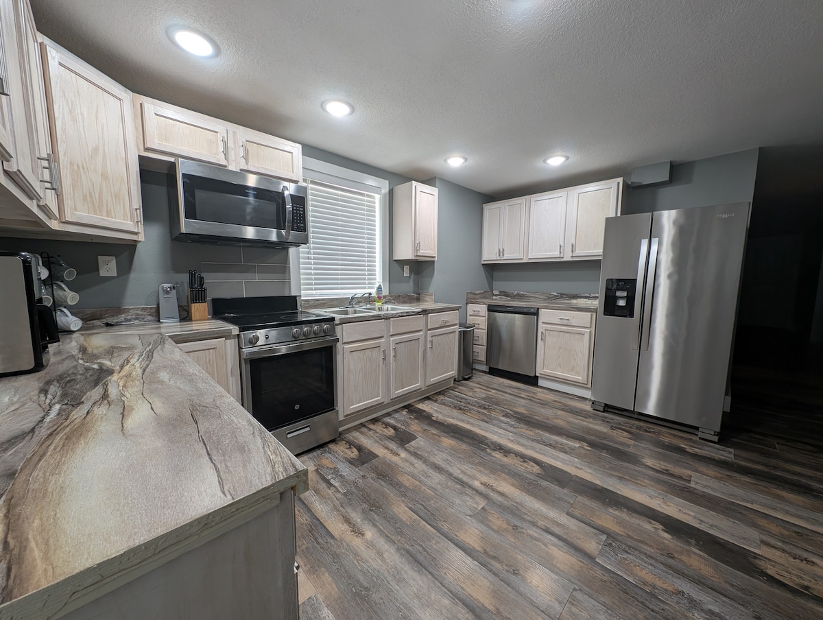 Welcome to your Home Away From Home! This modern, newly built retreat offers the perfect blend of style and comfort. Enjoy a spacious open-concept kitchen and living area with stainless steel appliances, granite countertops, and sleek acid-stained floors. Rest easy in large, beautifully furnished bedrooms and stay connected with lightning-fast Right Fiber internet. A security system ensures peace of mind during your stay. Your perfect getaway awaits!