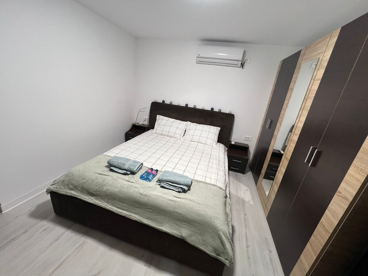 This stylish accommodation is perfect for group trips. The apartment is located near Nicolae Romanescu Park, opposite Lidl and 10 minutes drive from the city center. Nearby is the Craiova emergency hospital, numerous restaurants, pharmacies, Kaufland 5 minutes away by car. The property is equipped with dishes, TV in the living room, the bedrooms are spacious and have a terrace, the living room is open space and the corner sofa is extendable.