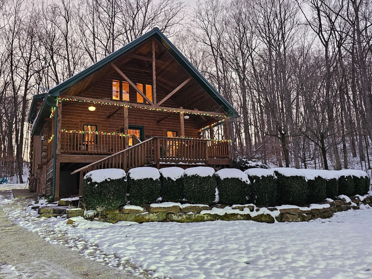 Isaak's Hideaway is a spacious cedar log cabin with expansive windows overlooking the Ohio River and surrounded by Hoosier National Forest in Magnet, IN. Sleeping up to eight, this cabin is ready to entertain a houseful of family and friends. Enjoy the amazing river view and barge traffic while relaxing at the stone fire pit or lounging in the hot tub. Also, located about 50 minutes from Holiday World. Freshly painted with all new appliances! Also check out Pop's Hideaway - Magnet, IN.