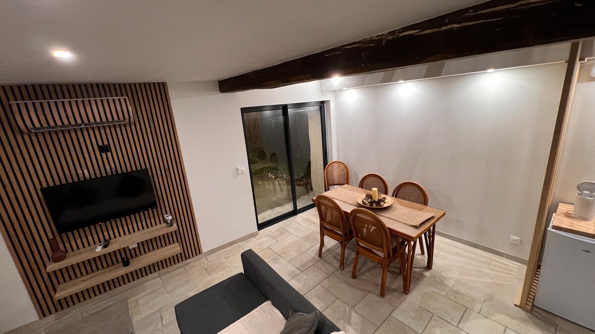 Treat yourself to a relaxing moment and nature! This 40 m² accommodation is an annex to the owner's house but it is independent and offers you everything you need for a pleasant stay. It includes a large main room (kitchen – dishwasher, microwave, oven, fridge, induction cooktop, coffee maker, etc. – TV, sofa bed, fireplace, etc.), a shower room with toilet as well as a terrace with barbecue and outdoor furniture.