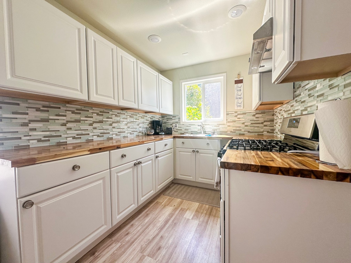 Enjoy a stylish but cozy cottage that is over 100 years old. Totally renovated with most modern conveniences, at this centrally-located place near downtown. Quiet neighborhood close to everything. Grocery stores, restaurants, shopping, Beach Front Park, the light house and the Harbor. All within walking distance. This is one of the oldest districts in Crescent City with craftsman style and Victorian houses. Charming. Bring your bikes, we have some great bike paths.
