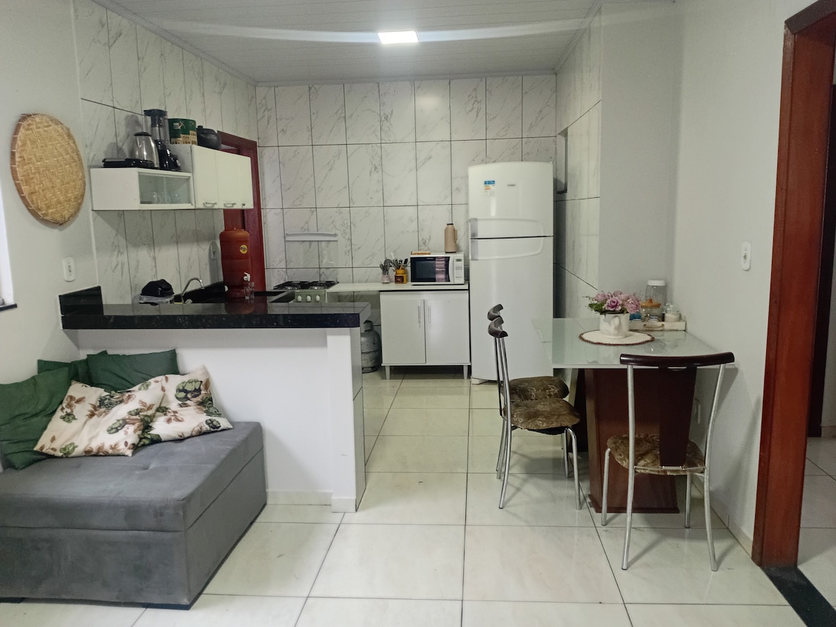 House with full leisure pool and barbecue area. The house is 5 km from BR 040, stop to rest and then continue your trip with a discount. High wall and closed gate. The house is 40 minutes from Brasília airport. The house has approximately 60 meters of internal area and has a kitchen, a bathroom, a 4-burner stove and basic kitchen utensils, making it possible to prepare your meal. Visitors are considered guests and the price per person is R$55 per night.