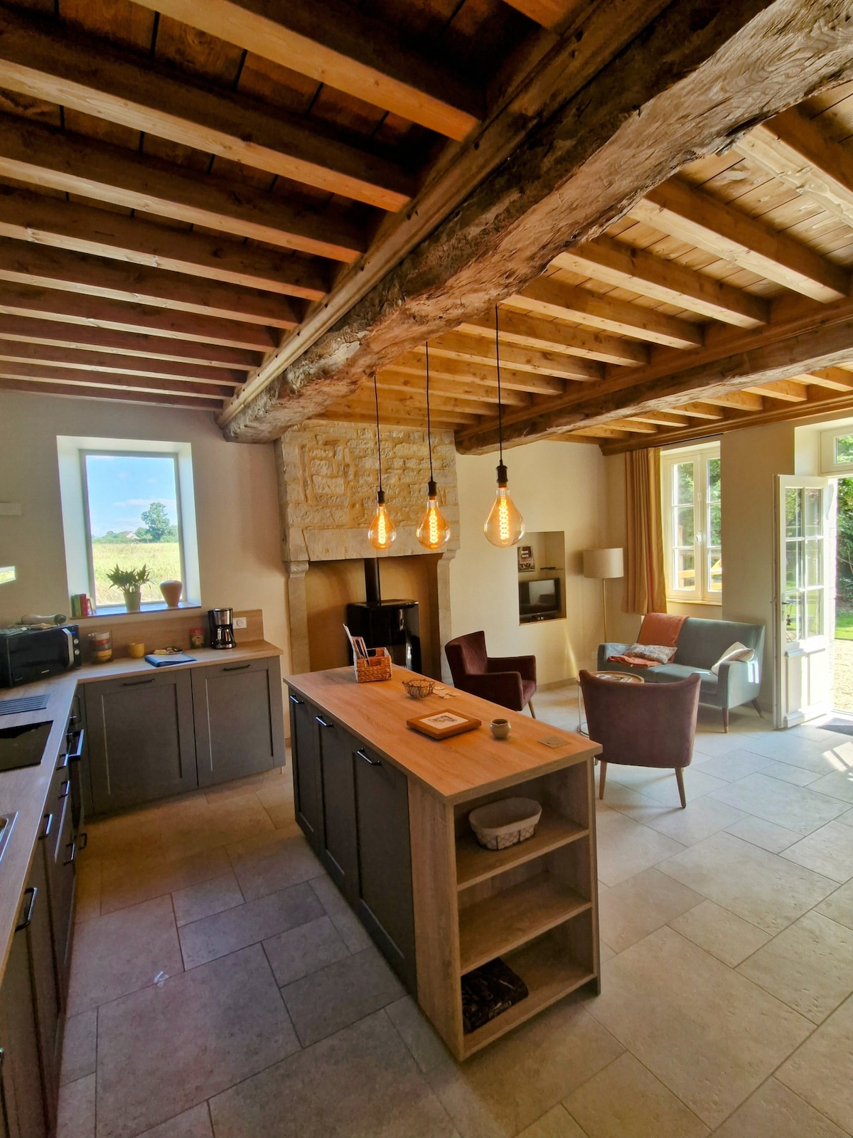 On the first floor of our family manor house, immerse yourself in the authentic charm of a 50 m² apartment steeped in history. With its period moldings and warm atmosphere, it's the perfect base for exploring the region year-round. You'll find a fully equipped kitchen, a comfortable living room, and all the amenities for a truly delightful stay.
