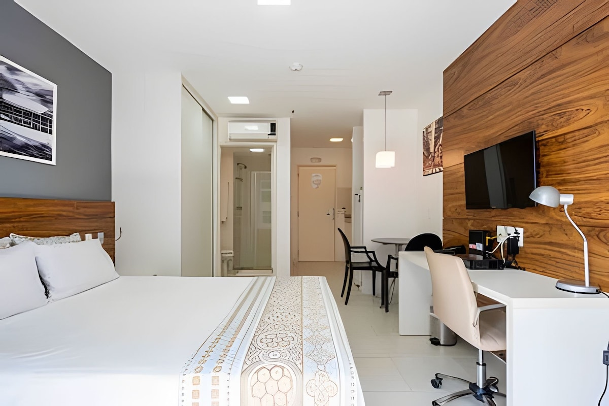 🏡 Beautiful Kit with Balcony – 40m² in the Southwest (Brasilia) Ideal for those seeking privacy, security and comfort. 700 meters from the Military Police Battalion and 10 minutes from the Esplanade, U.S. Embassy and Airport. Next to Sugarloaf Mountain, Parque do Sudoeste and 7 min from the Convention Center. ✨ Air conditioning, microwave, air fryer, washing machine, sandwich maker, popcorn maker, refrigerator, smart TV, iron, hair dryer, 2-burner electric stove, bedding, towels and 500 MEGA Wi-Fi!