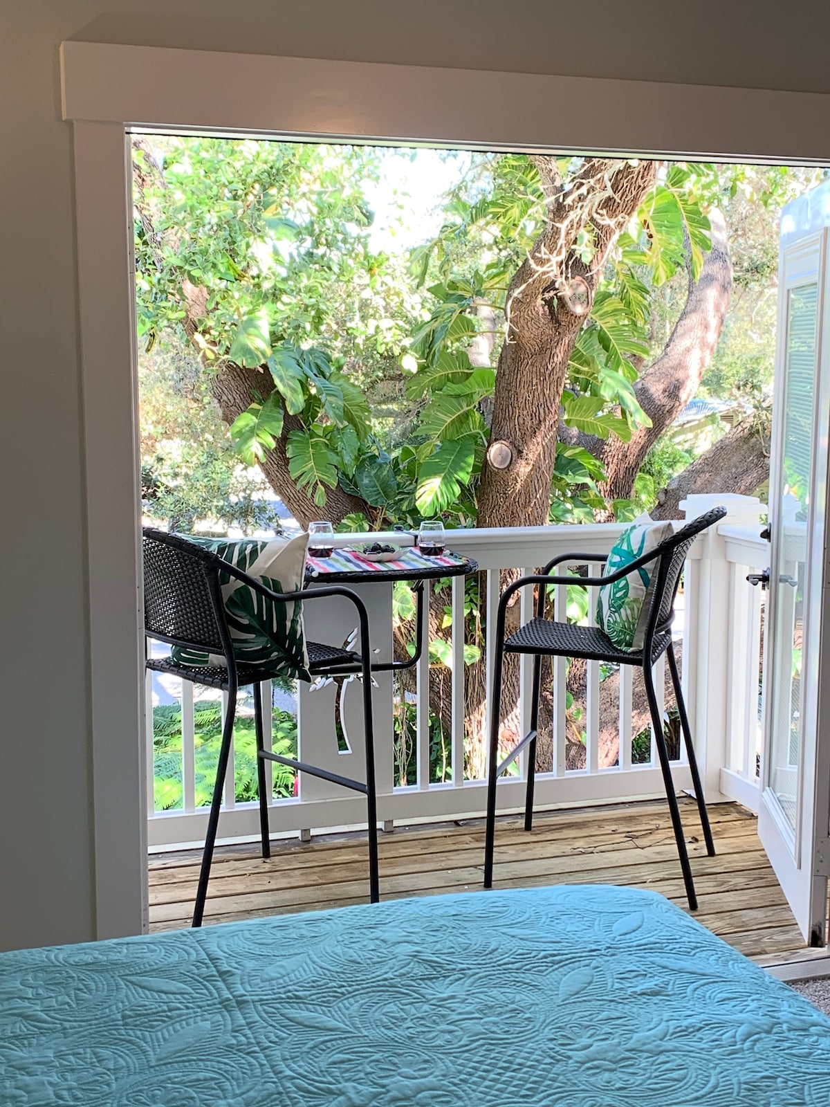 This private vacation rental is a Second floor 1 bedroom apartment is newly furnished, professionally decorated and equipped with all the conveniences of home. Island Oak joins 4 other popular vacation rentals within the Grove Keeper Collective compound. This upper unit has a balcony off the bedroom which looks into a 175 year old oak that provides a tree house effect. We hope you come and enjoy this new addition to Grove Keeper Collective. All our units are non smoking and vaping.
