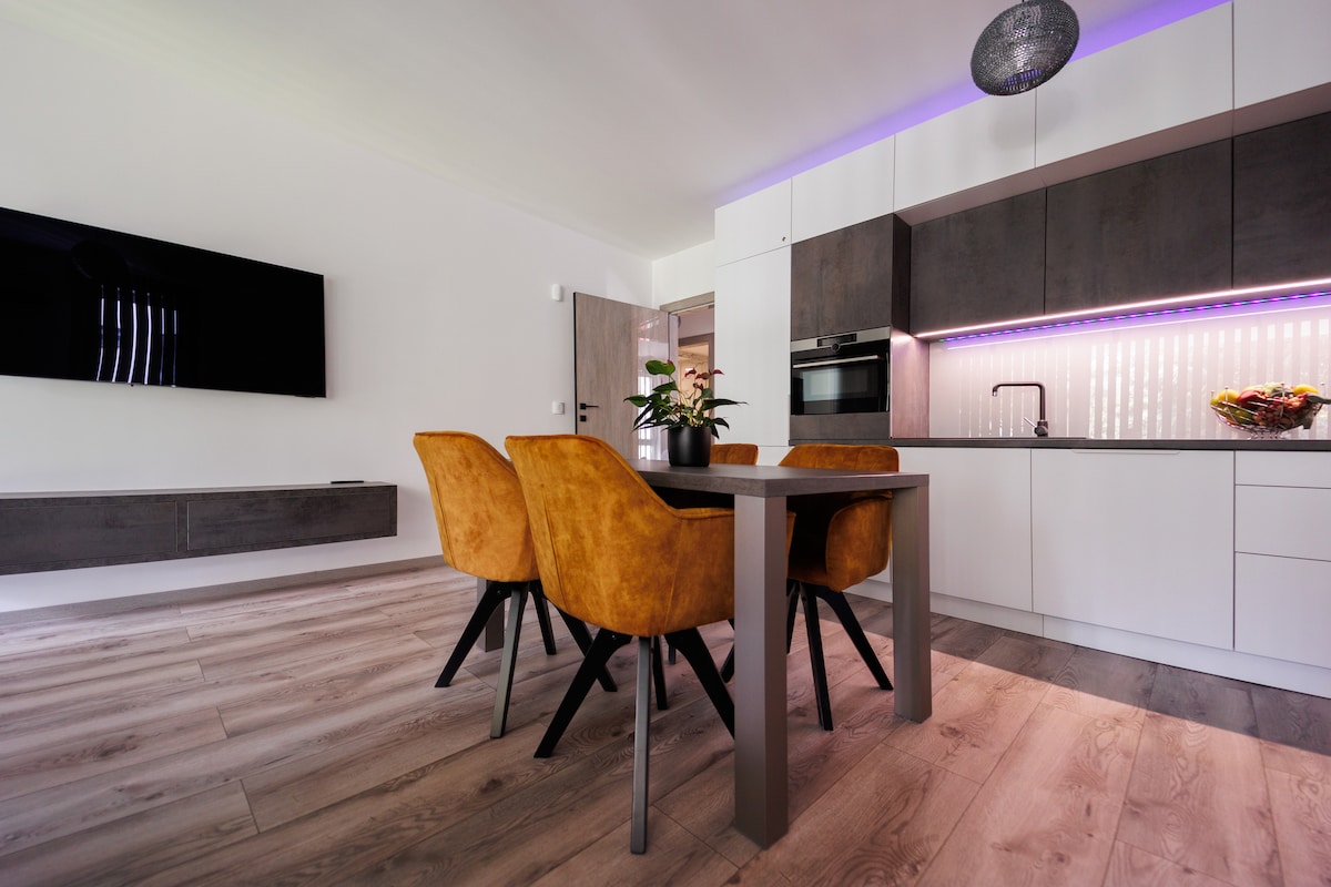 Our apartment house was built in Balatonudvar in 2025. Ideal for relaxation, but the main attractions of Lake Balaton are also accessible, whether by bike, car or train, so you don't have to give up the hustle and bustle. The beach of the settlement satisfies all needs; beach section for children, huge playground, beach football, volleyball, water bike, boat, SUP rental. The house is 200 meters from the beach. You don't have to cram the rubber mattress into the car :) and you don't have to fight for parking spaces either.