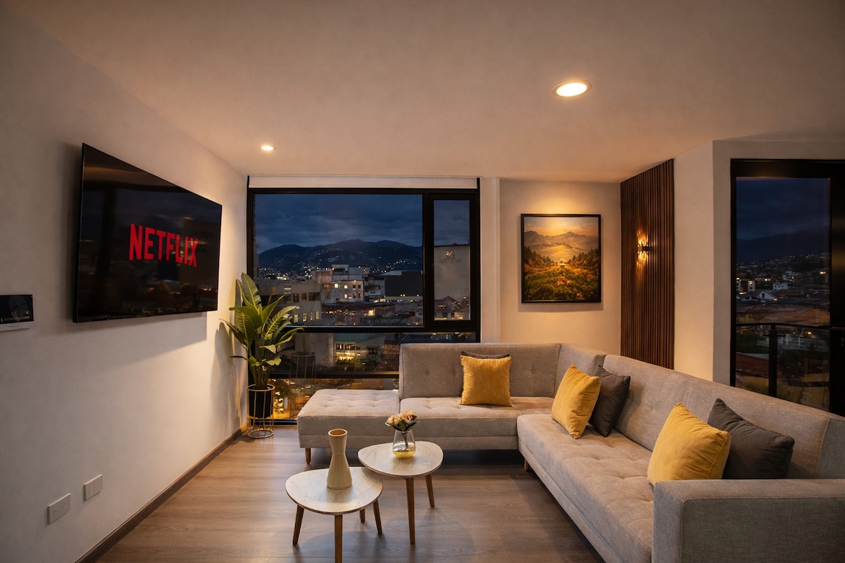 Apartment with 24/7 security, Excellent Location, Easy 24h Entry, All of Cuenca just a step away, Queen size, Incredible View, Home Office, High Speed Internet. Apartment located in Plaza Toledo Building, a charming place because of the view, location, comfortable, safe and friendly people; ground floor has restaurants. Free parking in underground garage one. The place is ideal for families, tourism, and business trips. Equipped with everything you need to feel at home, YOU'LL LOVE IT