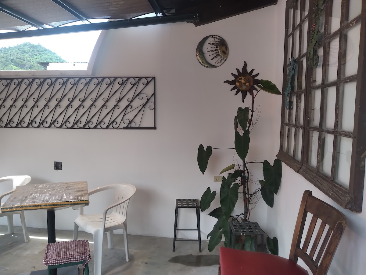 Apartamento completo con un lindo jardín interno. Podrás aprovechar al máximo tu estadía al estar en un lugar céntrico y al mismo tiempo relajarte en un lugar tranquilo con jardín. Ubicado a 20 minutos del aeropuerto Internacional La Aurora, a 10 minutos de zonas de restaurantes, hospitales y cerca de transporte público, que lleva directamente al Centro Histórico. A la par del alojamiento se encuentra una tienda de conveniencia y a dos cuadras se encuentra un supermercado Torre Express