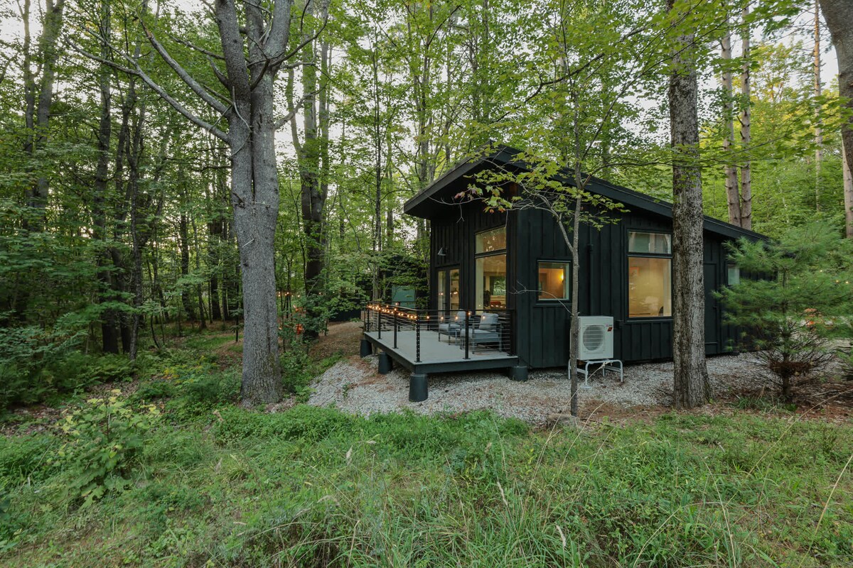 The Haven is a modern, luxurious cabin that lets you experience the outdoors in exquisite comfort. This particular cabin is accessible and features large windows over the bed looking up at the trees, a small kitchen, a luxurious accessible full bathroom, a dining nook with built-in benches, and a queen sleeper sofa. There is also an outdoor seating area where you can enjoy being outside by the fire! The cabin is set in a serene, wooded campground at the edge of the iconic dunes of the Desert of