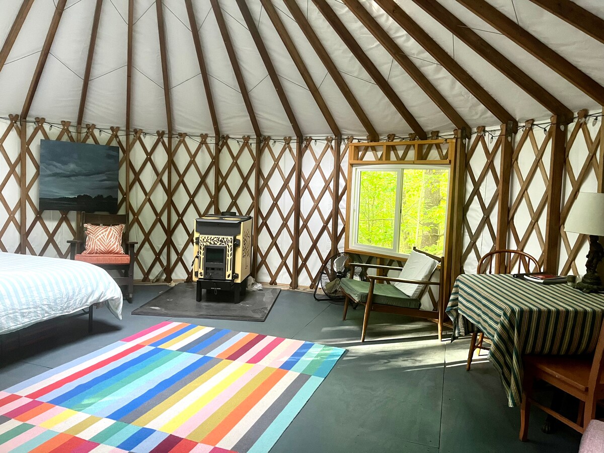Experience our magical yurt tucked under the tree canopy overlooking our spring-fed mountain brook. This yurt is accessible on foot (a 5 minute walk uphill). We provide garden carts and sleds in winter to bring your gear into the yurt. The yurt does not have solar power, running water, or wi-fi. We provide oil lanterns, tea candles, 2-burner propane stove and heat by wood-stove. This yurt does not accommodate pets.