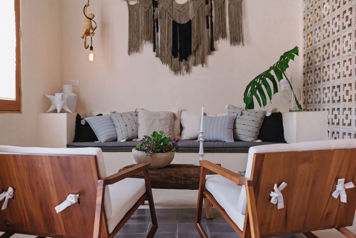 Named one of Mexico's best Airbnb's by Condé Nast and featured in publications such as Architectural Digest, Glocal Magazine & Archdaily . Casita Jabín is an award-winning relaxing refuge located in the Yucatán jungle, 10 minutes away from the colonial town of Valladolid and just across the street from Cenote Suytún. Featuring contemporary Mexican architecture, clean design and a private plunge pool, it’s the perfect place to rest and unplug.