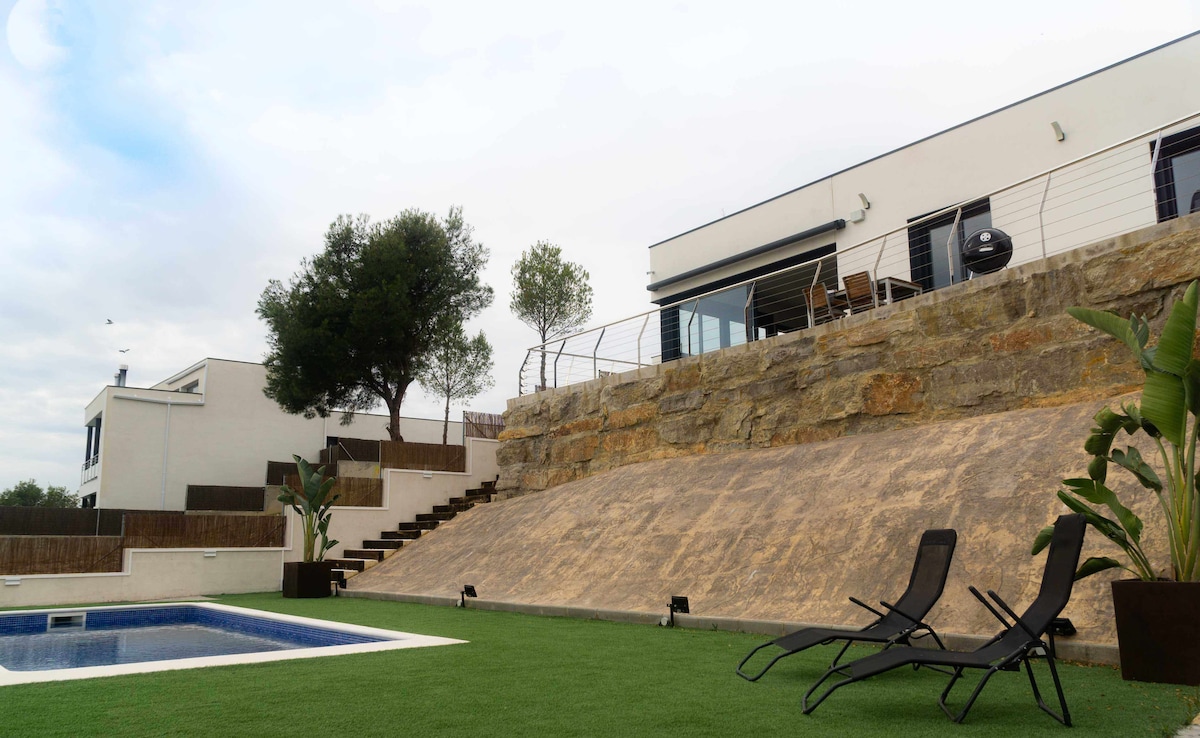 Villa Lotus is in Calafell, Costa Dorada, a 5-minute drive to the beach. Good communication with Barcelona, Tarragona, Sitges, Port Aventura, etc. You'll love my house and its features: - Large living room with open kitchen - An outdoor area with a barbecue - A leisure area with a ping-pong table and foosball - Saltwater pool - A chill-out area with a fish pond - Air conditioning & heating My accommodation is good for families (with children), groups of friends, and adventurers