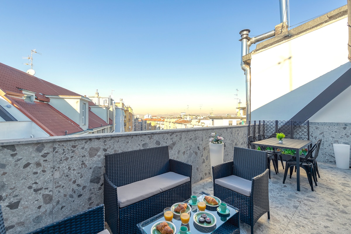 Recently renovated two-storey penthouse with 4 bedrooms (2 doubles, 2 singles), kitchen, 2 bathrooms and terrace; it's located in a strategic area of the city, well connected to the center and the main tourist attractions. Bright, spacious and quite, with lift. All comforts included (broadband wi-fi, air conditioning in all rooms, TV, working desks, fully equipped kitchen to host up to 6 guests). Trotter Park, Martesana and branch of the San Raffaele Hospital just below the house.
