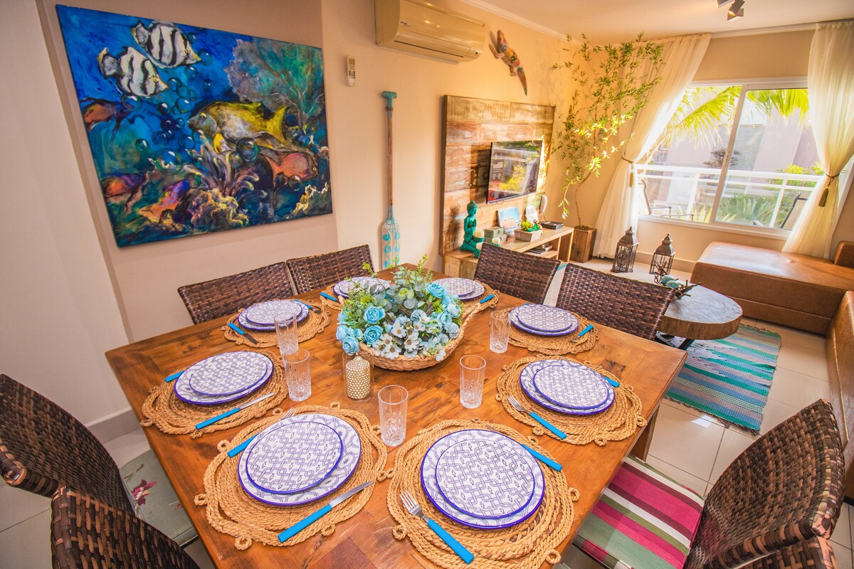 At our cottage, you will find peace and comfort, waking up with the sound of the ocean, surrounded by nature and a breathtaking view of the beach and mountains of Toque Toque Grande. Located in a condo with exclusive access to the beach via a trail, our space is perfect for a family. It has 2 bedrooms, 2 bathrooms, a living room, air conditioning in all rooms, Wi-Fi, and a fully equipped kitchen. The idea here is slow down, relax and enjoy being surrounded by nature!