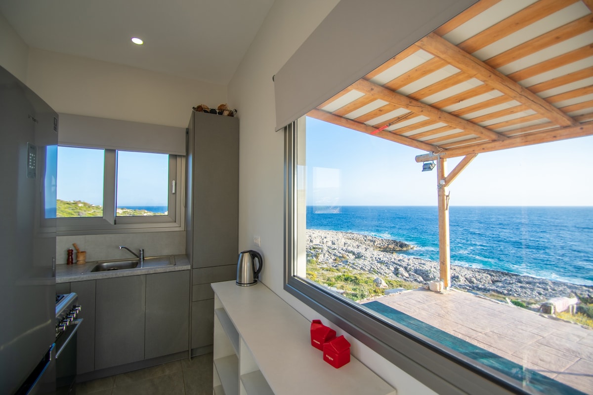 an unique detached house inside an olive grove of 12000 sq with breath taking pool with sea view, relax your mind at calmness of the nature. and drink your coffee or cocktail with the view of Ionian sea. the house contains everything you gonna need from, fully factional kitchen,washing and dryer machine,dish washer, to iron and hairdryer. the house is perfect choice for couple,and for small families or couple of friends as we can rearrange the sofa as very spacious double bed