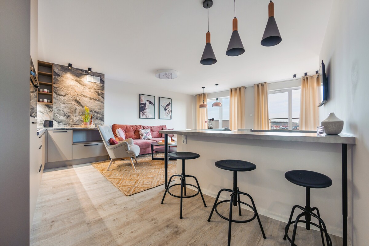 The ideal place for those who dream of a relaxing stay overlooking the sea. Enjoy your morning coffee with the sunrise or a romantic evening watching the sunset from the comfort of your armchair in the glazed lounge. A wonderful experience and relaxation with natural light. A unique and amazing view of the Gulf. - Air conditioning - Netflix / WiFi 600 MB/s - Free parking - 900m to the sea, close to the centre and Sopot - Large living room - Gym, dry and steam sauna, lounge with billiards