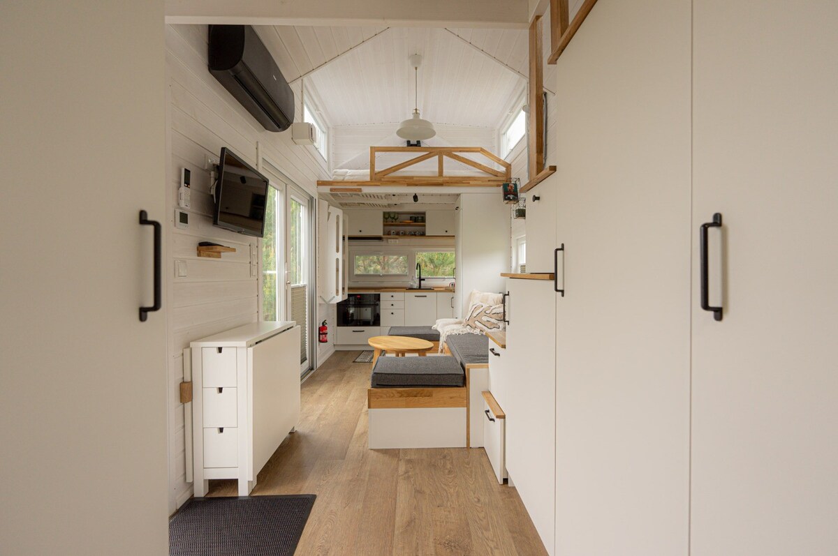 🌲 Tajnikowo – Secret Tiny House with Jacuzzi in the heart of the Kashubian forest Welcome to Tajnikowo – a unique tiny house hidden among pine forests in Łubiana in Kashubia. It is the perfect place for people who want to escape the hustle and bustle of the city and immerse themselves in the peace and quiet of the surrounding nature.